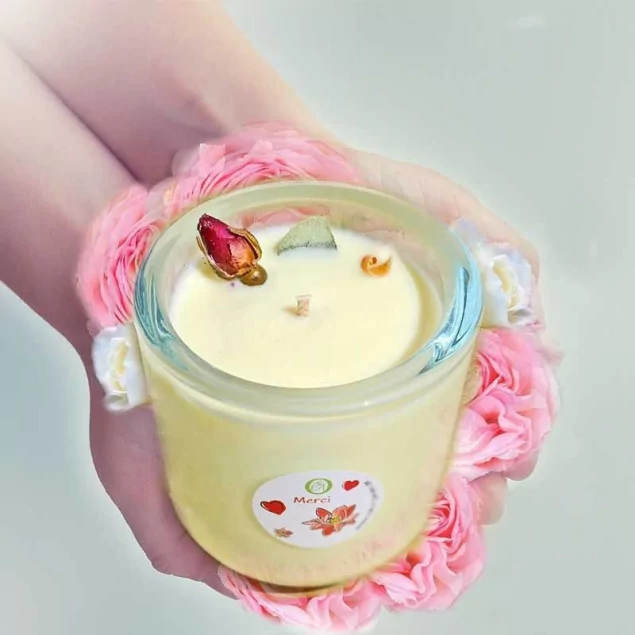 100% natürliche Duftkerze "Merci" -> ein ansprechendes und liebevolles Geschenk und/oder ein aromatisches Duftobjekt zur Beduftung Ihrer Räume mit ätherischen Ölen